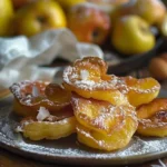Les beignets de pommes se dégustent chauds, à peine sortis de la friture. Pour une présentation soignée, disposez-les sur un plat et saupoudrez-les généreusement de sucre glace ou d’un mélange de sucre et de cannelle. Servez-les avec une tasse de thé ou de café pour un moment convivial.