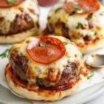Il y a quelque chose de magique à l’idée de combiner un burger juteux et une pizza savoureuse, et cette recette de Burgers à la pizza fait exactement ça. Imaginez une bouchée où la tendreté du boeuf se marie à la sauce tomate, au fromage fondu et aux tranches de pepperoni. Ça réveille des souvenirs d’été, des barbecues entre amis, et de soirées familiales autour d’une table. Si ça ne vous fait pas saliver, je ne sais pas ce qui le fera !
