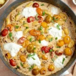 La burrata, placée au centre, ajoute ce moment de magie : lorsqu’on la fend, sa crème vient se mêler à la sauce chaude pour un résultat tout simplement irrésistible. Que vous le serviez un soir de semaine ou pour une occasion spéciale, ce plat fera toujours effet.