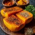 La courge butternut épicée se savoure aussi bien tiède que chaude. Servez-la en accompagnement d’un plat de viande grillée ou d’un bon poisson. Pour une touche encore plus gourmande, ajoutez une petite garniture de yaourt grec ou de feta émiettée, et un filet de miel pour équilibrer les épices.