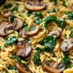 Orzo au beurre à l’ail avec des champignons et des épinards