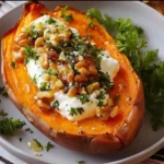 - Cuire au four pendant 40-50 minutes jusqu'à ce que la patate douce soit tendre.