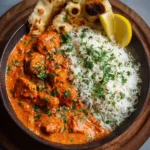 Servez votre Poulet au Beurre bien chaud pour profiter de la sauce onctueuse. Accompagnez de riz vapeur et de naan pour absorber chaque cuillerée de sauce. Parsemez un peu de persil frais pour une touche de couleur et de fraîcheur. Le contraste entre le riz neutre et la sauce riche rend le plat irrésistible.