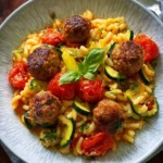 Risotto de Pâtes aux Courgettes, Tomates et Boulettes Croustillantes