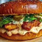 Le sandwich au poulet épicé avec sauce crémeuse maison est un plat savoureux qui fait plaisir à tout le monde. Avec du poulet tendre, une panure croustillante et une sauce délicieuse, ce sandwich est parfait pour un déjeuner copieux ou un dîner rapide. Accueillez chez vous ce mélange de saveurs épicées et de crémeux irrésistible.