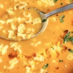 Cette soupe est tout aussi simple qu’elle est réconfortante. Elle combine la saveur délicate des légumes mijotés avec la richesse des lentilles rouges et la touche ludique des petites pâtes alphabet. C’est un plat complet, nourrissant, et adaptable à tous les goûts — parfait pour faire plaisir aux enfants comme aux adultes. Sa texture veloutée et sa jolie couleur dorée en font un plat aussi beau visuellement que délicieux.